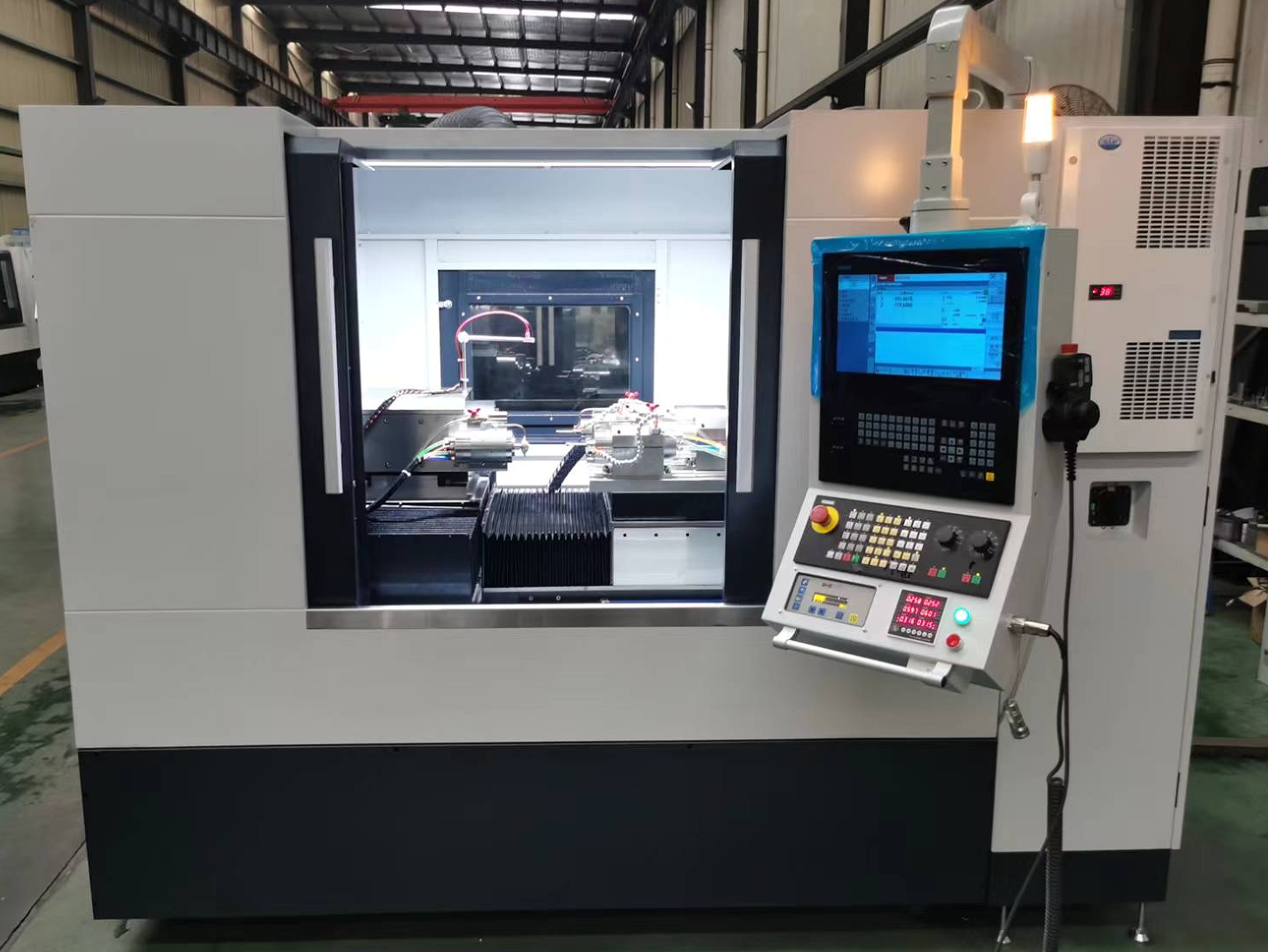 该磨床工件轴采用高精度气静压电主轴,粗精磨砂轮轴采用高精度超声波气静压电主轴,砂轮修整采用高精度气静压电主轴,X/Z轴导轨均采用高精度气浮导轨+直线电机,西门子828D精密数控系统,意大利绩伟高精密光栅尺,在线式检测仪,AE消空程、防碰撞传感器,空气弹簧减震装置,以及温度和气压控制,组成全闭环控制系统。使整机达到圆度0.5um,圆柱度2um的加工精度。工件装卡采用精密三爪卡盘,或筒夹、以及膜片式夹具,或BT50刀柄自动松拉刀机构工装夹具,专用拉丁可对接BT40/BT30/HSK等过渡套,使整机具有多种装夹能力,以及更高、更快的加工效率。具体技术参数如下。